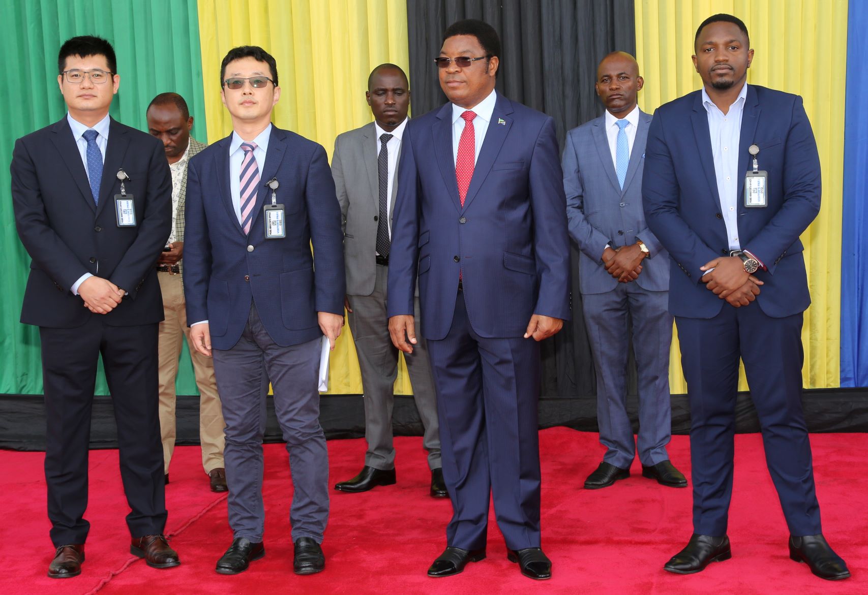 Waziri Mkuu, Kassim Majaliwa amepokea mchango wa vifaa vya kuendeshea mikutano kwa njia ya video ambavyo ni cloudlink camera tatu, Cloudlink Mic tatu, Cloudlink TV terminal tatu, Cloudlink Platform pamoja na Thermal Imaging Temperature Measuring System sita vyote vikiwa na thamani ya sh. milioni 940 Kutoka campani ya TEHAMA ya HUAWEI,kwa ajili ya kuunga mkono juhudi za Serikali za kupambana na ugonjwa wa homa kali ya mapafu – COVID-19. Pichani, Waziri Mkuu akiwa katika picha ya pamoja na Mtendaji Mkuu wa Kampuni hiyo, Zhou Xu (wa tano kulia), Mkurugenzi wa Kampuni hiyo, Wu tao (kushoto) na Meneja Masoko wa Kampuni hiyo, George Mwakyembe. Wa nne kulia ni Waziri wa Madini, Doto Biteko, wa pili kulia ni Naibu Waziri wa Afya, Maendeleo ya Jamii, Jinsia Wazee na Watoto, Dkt. Faustine Ndugulile . (Picha na Ofisi ya Waziri Mkuu)