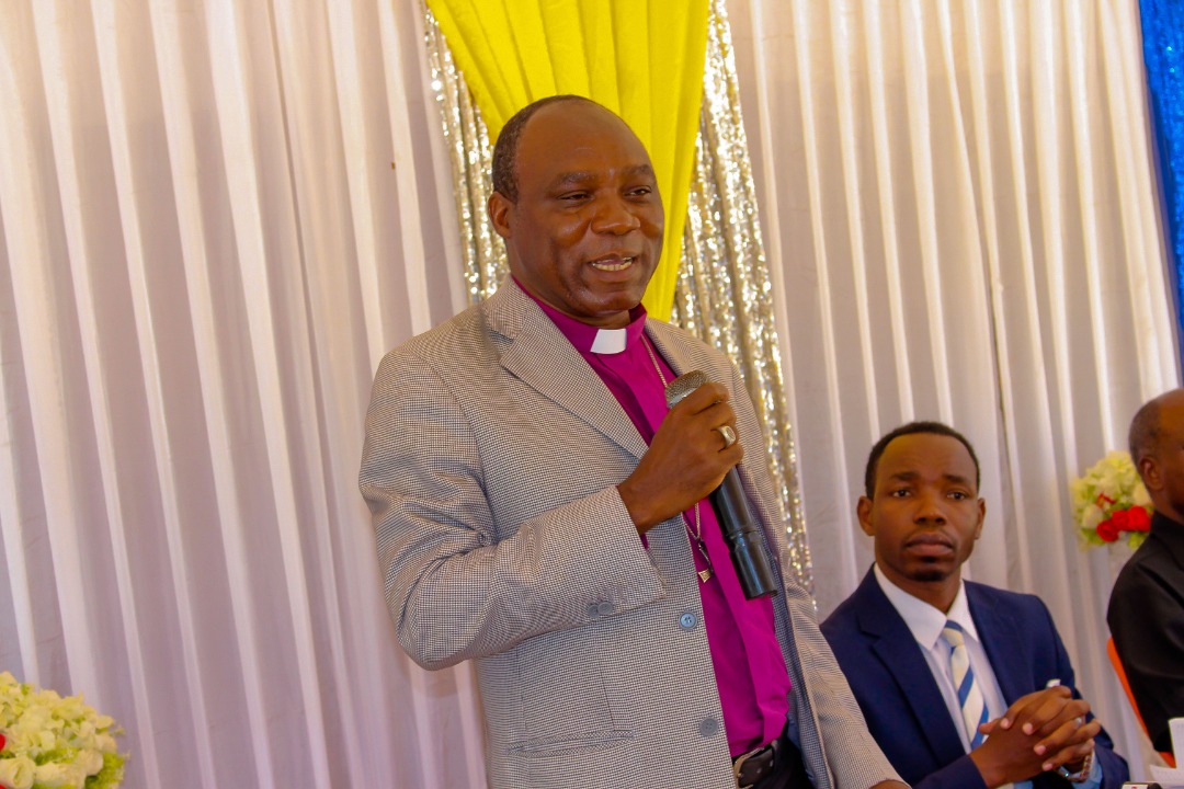 Askofu wa Kanisa la Anglikana Dayosisi ya Dodoma, Dk Dickson Chilongani akizungumza wakati wa hafla ya kugawa vifaa vya kupambana na ugonjwa wa Corona.