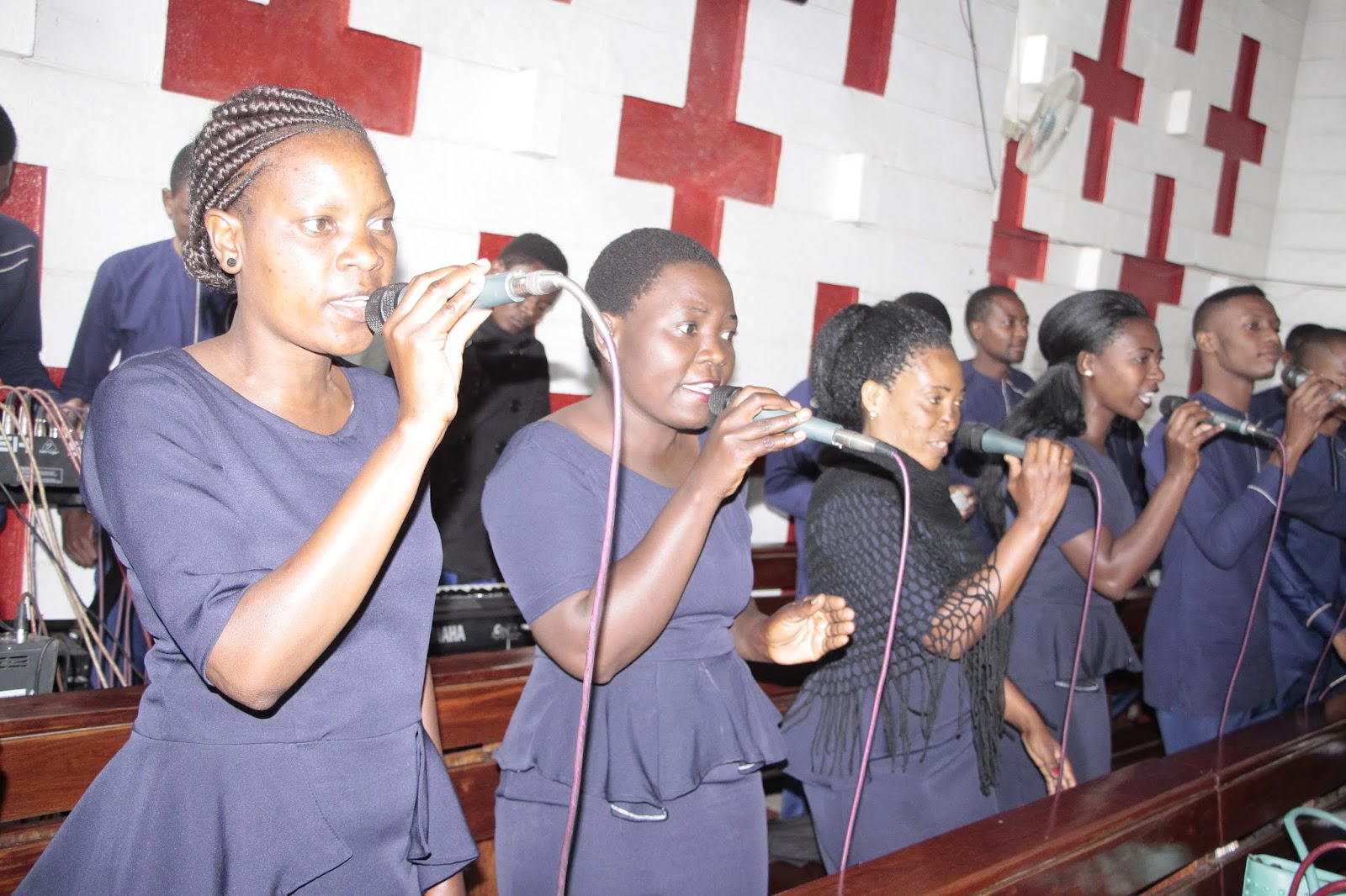 Wanakwaya ya Faraja ya KKKT Usharika wa Immanuel wakiimba wakati wa ibada ya Pasaka.