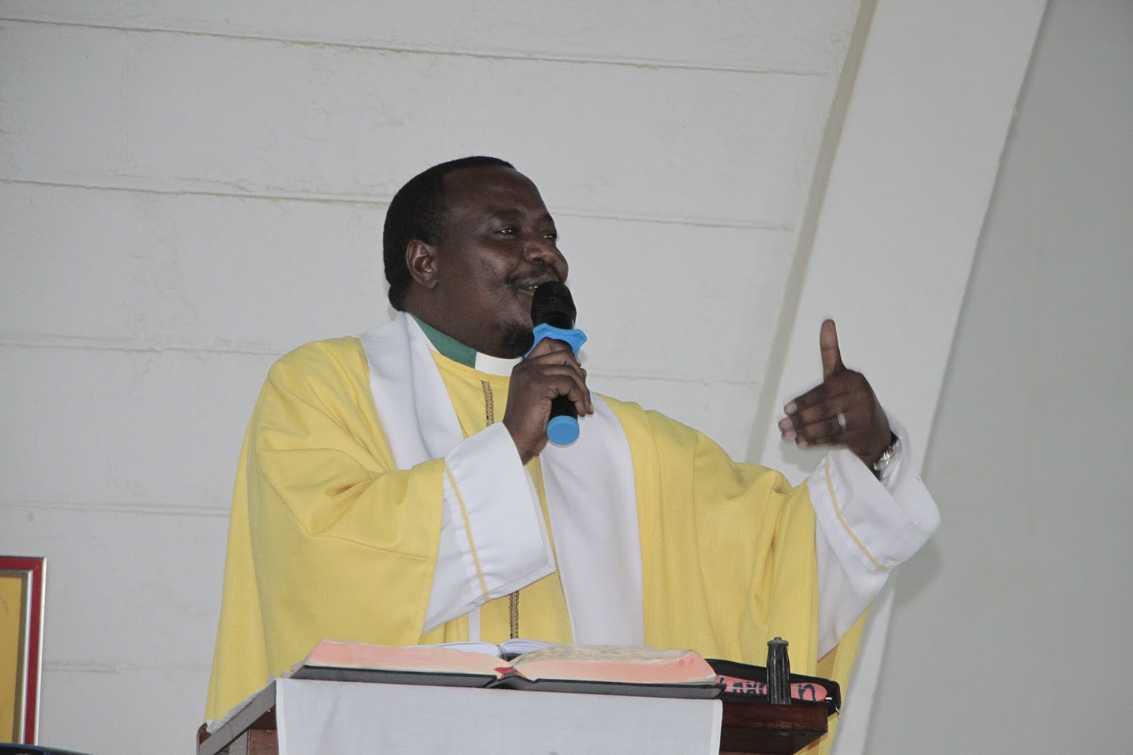 Mchungaji Felix Kibiriti wa KKKT Dayosisi ya Kati, Usharika wa Immanuel Singida akizungumza kwenye ibada ya Pasaka iliyofanyika ndani ya usharika huo hivi karibuni