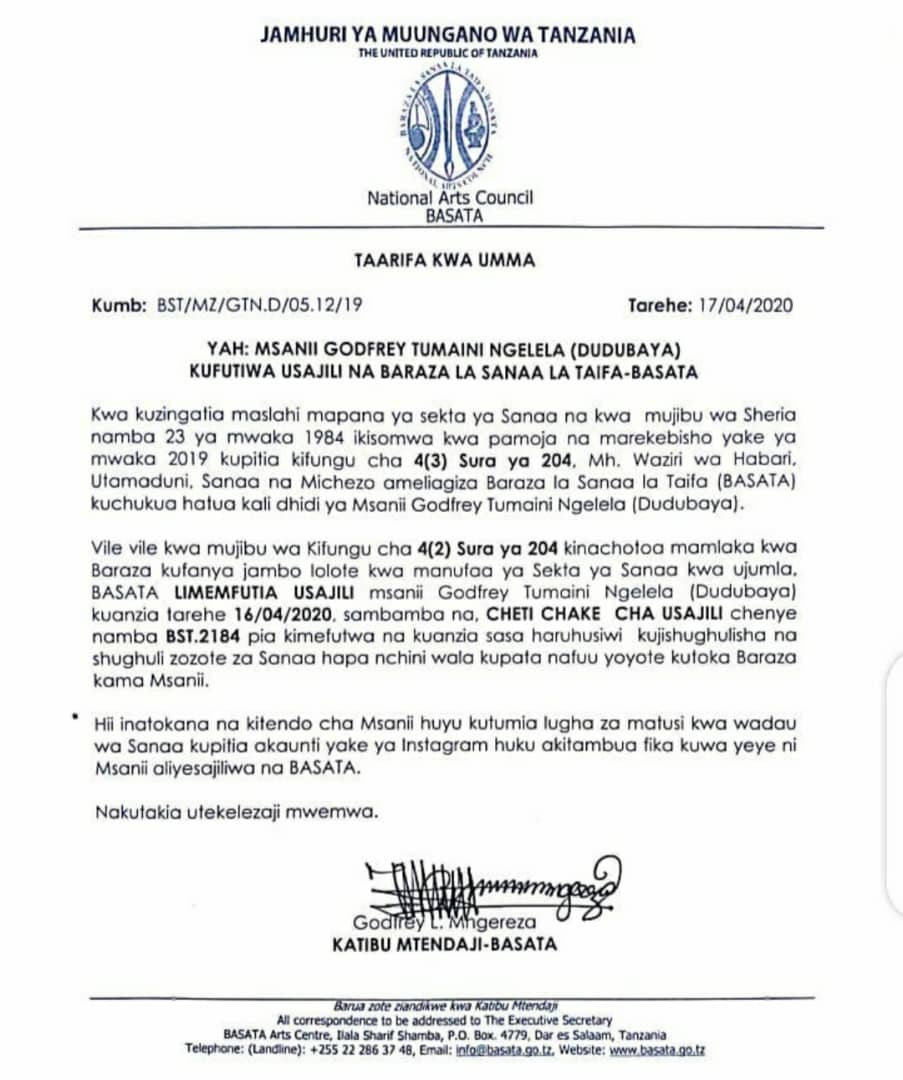 BurudaniDUDUBAYA AFUTIWA USAJILI BASATA Last updated: 2020/04/17 at 2:53 PM joseph 6 years ago Share SHARE joseph April 17, 2020 April 17, 2020 Share this Article Facebook Twitter Email Print Previous Article KANISA LA CHRISTIAN FELLOWSHIP LAKIPATIA KITUO CHA AFYA LULANZI VITI MWENDO 15 Next Article Wagonjwa 53 waongezeka, Amana Sasa kupokea wenye dalili badala ya Muhimbili
