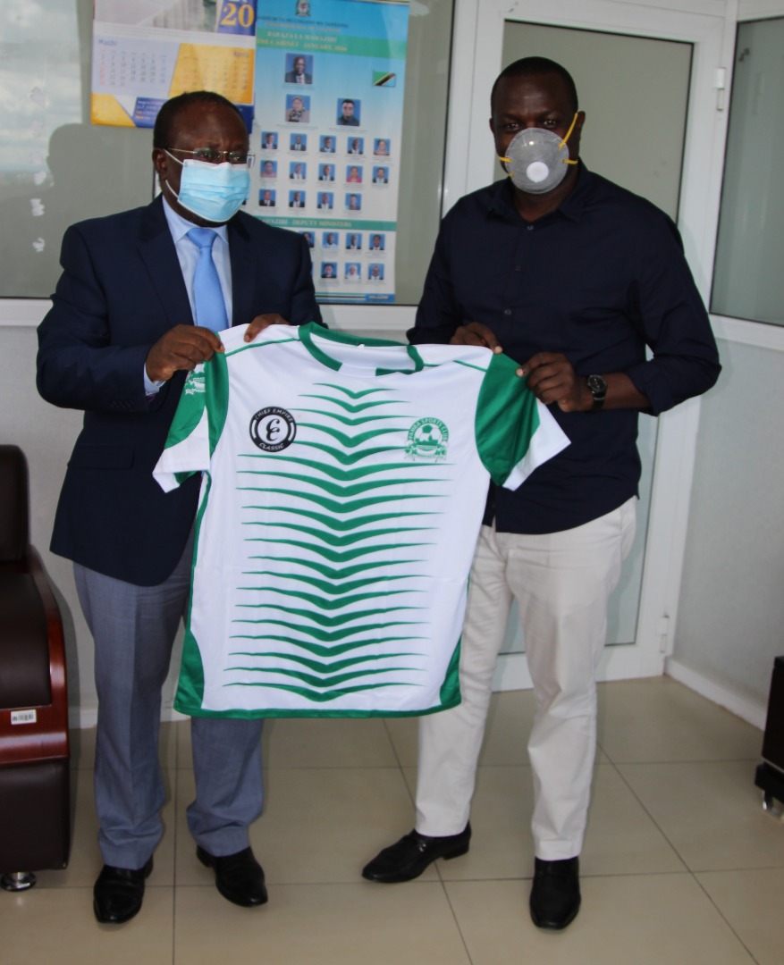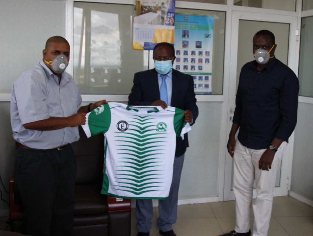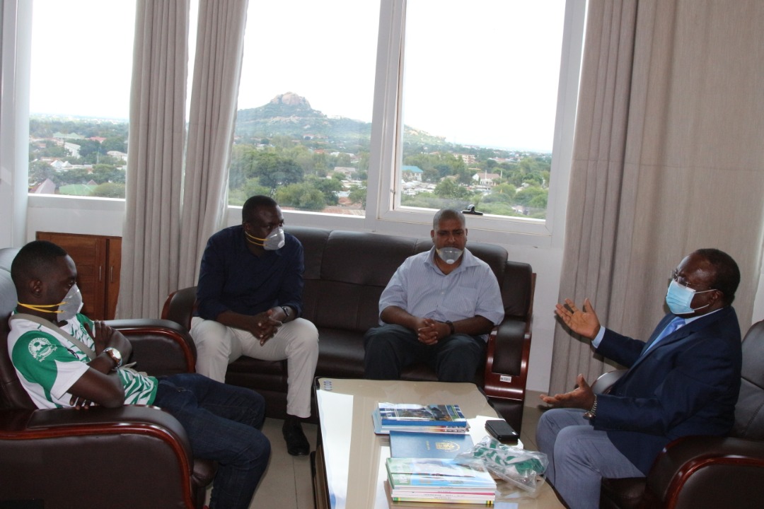 timu hiyo inayoshiriki ligi ya daraja la kwanza kundi B Aleem Alibah (kushoto) alipomtembelea ofisini kwake leo jijini Dodoma.