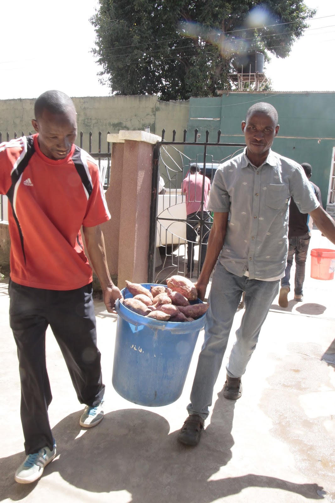 Viazi vya futari vikiingizwa ndani ya stoo ya ofisi ya Bakwata Mkoa wa Singida.