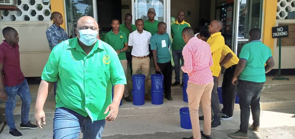 Viongozi wa UVCCM Kata 18 za Wilaya ya Nyamagana, leo Jumatatu wamepatiwa Lita 180 za sabuni na Katibu wa UVCCM Wilaya ndugu Malanyingi Matukuta ambazo walipatiwa na UVCCM Mkoa wa Mwanza.