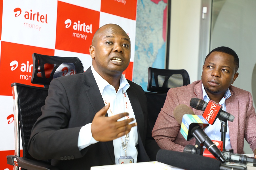 Mkurugenzi wa Airtel Money akiongea na waandishi wa habari jijini Dar es Salaam baada ya Airtel Tanzania kuzindua huduma ya Timiza Akiba. Timiza Akiba imekua kwa asilimia 30 kwa miezi mitatu ya Disemba 2019 mpaka Machi 2020 na hivyo kutoa suluhisho ya kifedha kwa Watanzania kuwekeza fedha zao. Kulia ni Meneja Uhusiano Airtel Tanzania Jackson Mmbando (Picha kutoka Maktaba)