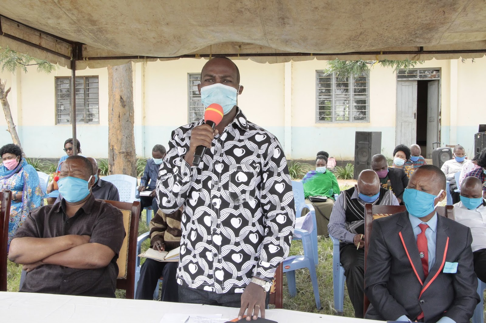 Mwenyekiti Mpya wa CWT Wilaya ya Ikungi, Ladislaus Nkuu akizungumza.