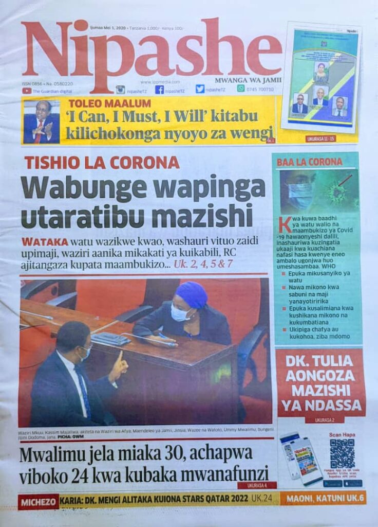 MagazetiPITIA VICHWA VYA HABARI KATIKA MAGAZETI YA LEO MAY 1,2020 Last updated: 2020/05/01 at 2:51 AM Alex Sonna 5 years ago Share SHARE Alex Sonna May 1, 2020 May 1, 2020 Share this Article Facebook Twitter Email Print Previous Article JAJI AUGUSTINO RAMADHANI KUAGWA KITAIFA KESHO Next Article WANANCHI WAISHUKURU SERIKALI UJENZI ZAHANATI