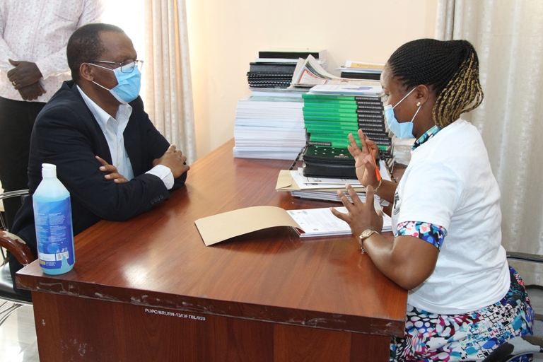 John Jingu akimsikiliza Mwandishi Msaidizi Celina Kilangi kutoka Tume ya Taifa ya