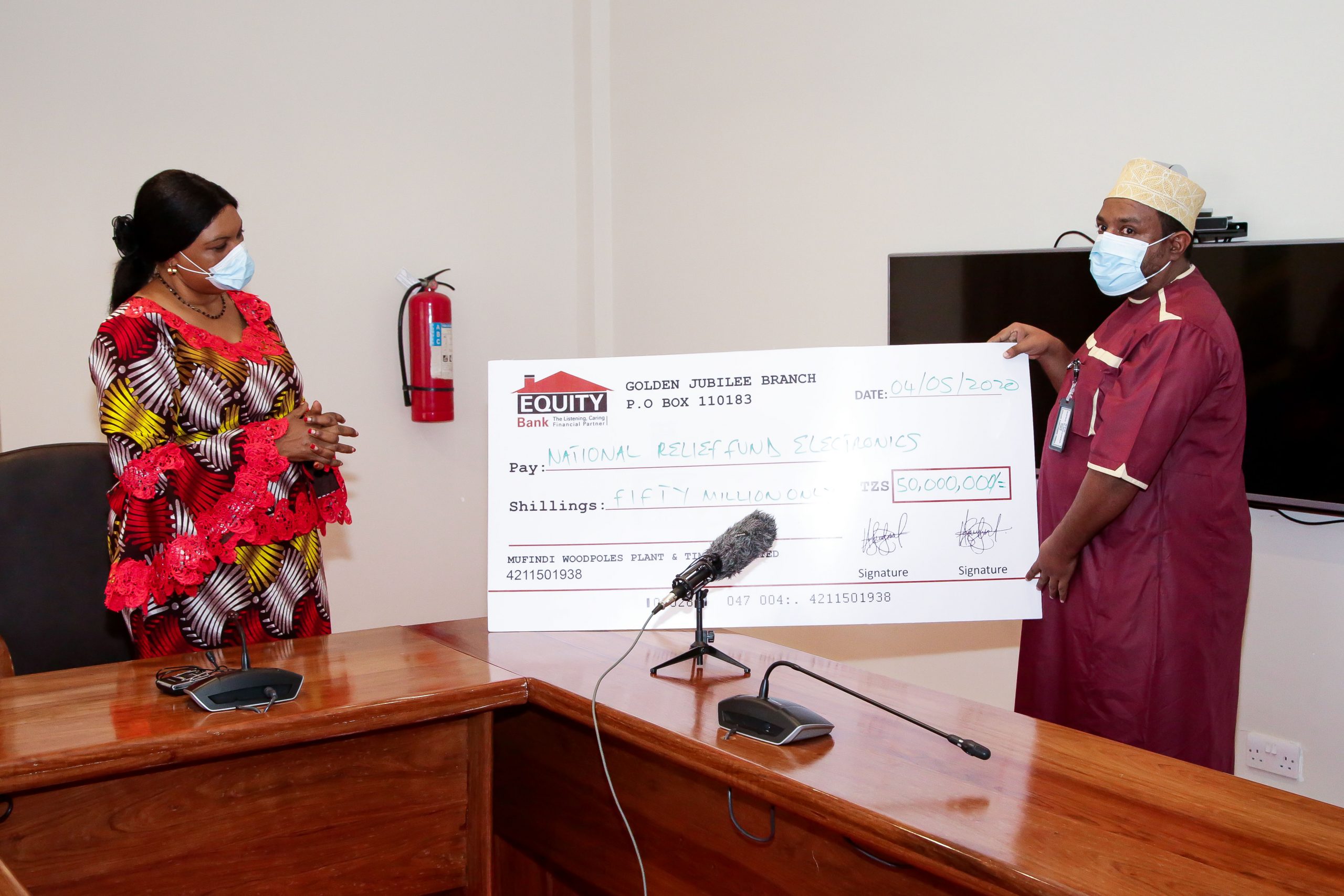 WAZIRI wa Nchi Ofisi ya Waziri Mkuu (Sera, Uratibu, Bunge, Kazi, Vijana, Ajira na Wenye Ulemavu) Mhe. Jenista Mhagama amepokea msaada wa hundi tatu zenye thamani ya sh. milioni 150 zilizotolewa na kampuni tatu zinazozalisha nguzo za umeme nchini kwa ajili ya kusaidia mapambano dhidi ya homa kali ya mapafu inayosababishwa na virusi vya Corona (COVID- 19).