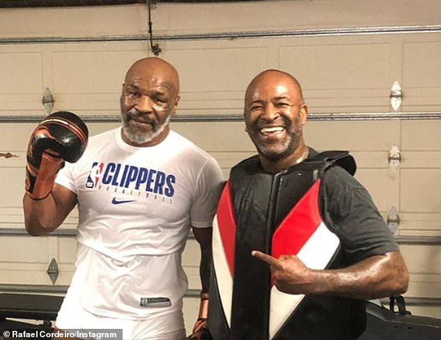 Bondia mstaafu, Mike Tyson mwenye umri wa miaka 53 (kushoto) akiwa gym kujijndaa kurejea uliangoni tangu alipopigana kwa mara ya mwisho Juni 11, mwaka 2005 na kushindwa kwa pinti na Kevin McBride ukumbi wa MCI Center Jijini Washington PICHA ZAIDI SOMA HAPA