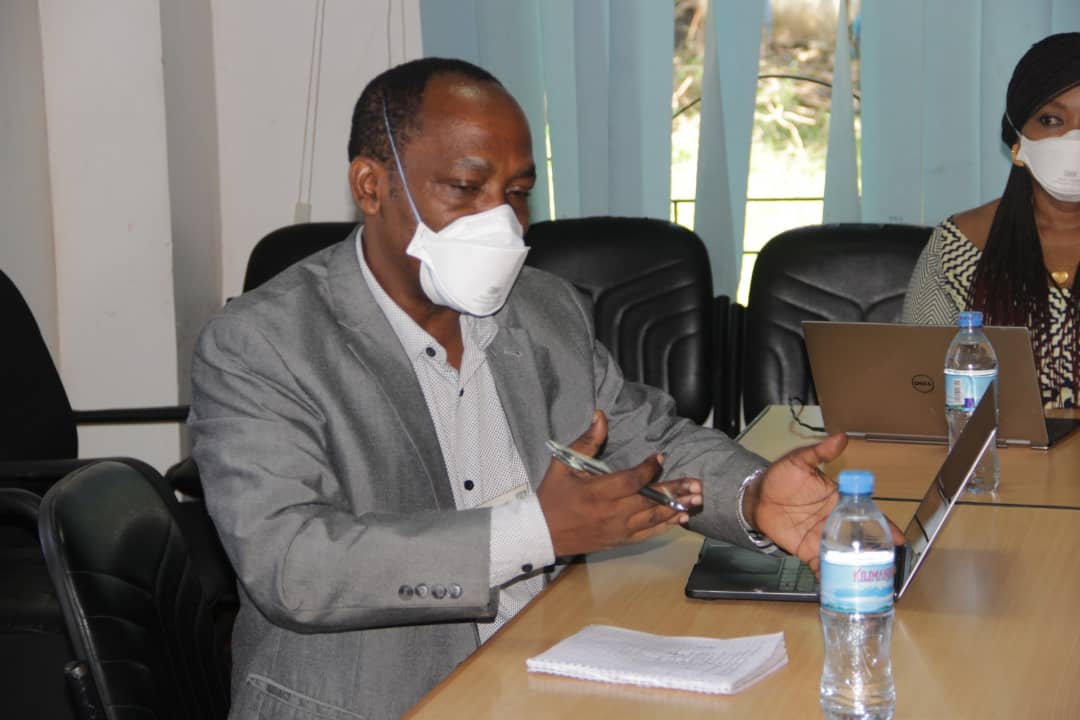 Waziri wa Afya, Dkt. Ndugulile akifafanua jambo baada ya kumalizika kwa mkutano kujadili jinsi ya kupambana na Covid-19 nchini. Kushoto ni Mkurugenzi Mkuu wa NIMR, Prof. Yunus Mgaya.