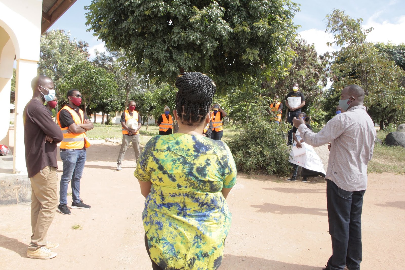 Mdau wa mapambano dhidi ya ugonjwa wa Corona kutoka Shirika la EYP la mkoani Mbeya, Ipyana Mwakyusa, akitoa maelekezo ya watu kukaa umbali wa mita moja kati ya mtu na mtu ili kuepuka kuambukizana virusi vya corona kama itatokea mmoja kati yao kuwa navyo katika Gulio la mji wa Puma.
