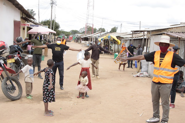 Mdau wa mapambano dhidi ya ugonjwa wa Corona kutoka Shirika la EYP la mkoani Mbeya, Amani Twaha, akitoa maelekezo ya watu kukaa umbali wa mita moja baina ya mtu na mtu ili kuepuka kuambukizana virusi vya corona kama itatokea mmoja kati yao atakuwa na virusi vya Corona.