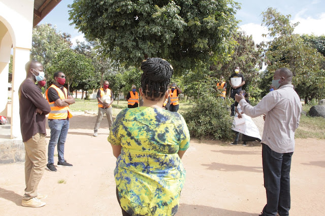 Mdau wa mapambano dhidi ya Corona kutoka Taasisi ya Empower Youth Prosperity ( EYP) ya mkoani Mbeya, Amani Twaha, akitoa elimu ya kujikinga dhidi ya mlipuko wa ugonjwa wa corona kwa watumishi wa Halmashauri ya Wilaya ya Ikungi.