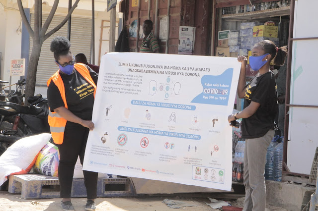 Afisa Mradi wa Shirika la SEMA, Renard Mwasambili akitoa maelekezo ya watu kukaa umbali wa mita moja kati ya mtu na mtu ili kuepuka kuambukizana virusi vya corona kama itatokea mmoja kati yao atakuwa navyo.
