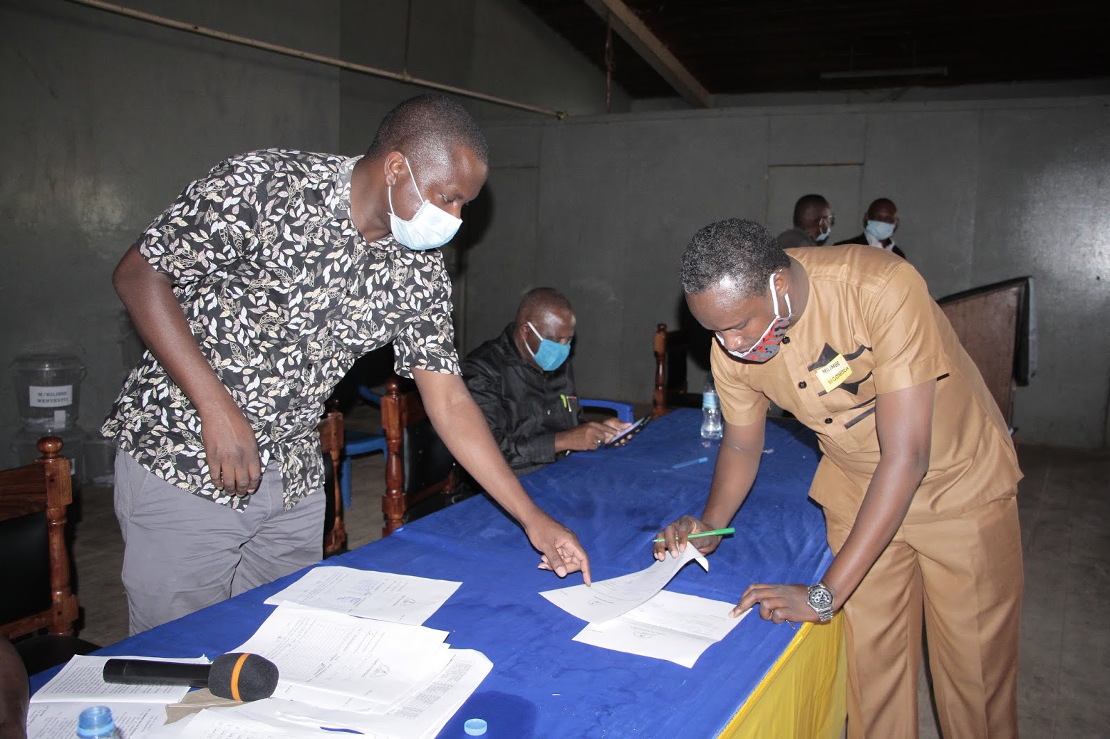Mtundua akijaza fomu maalamu ya uongozi. Kushoto ni Afisa Kazi Mkoa wa Singida, Boniface Ntalula.