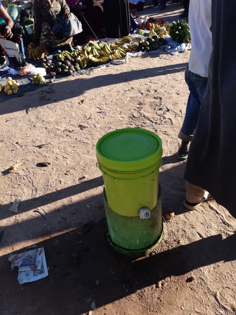 Hii ni miongoni mwa ndoo chache zilizopo katika Soko la Njia Panda wilayani Singida, lakini haina sabuni.