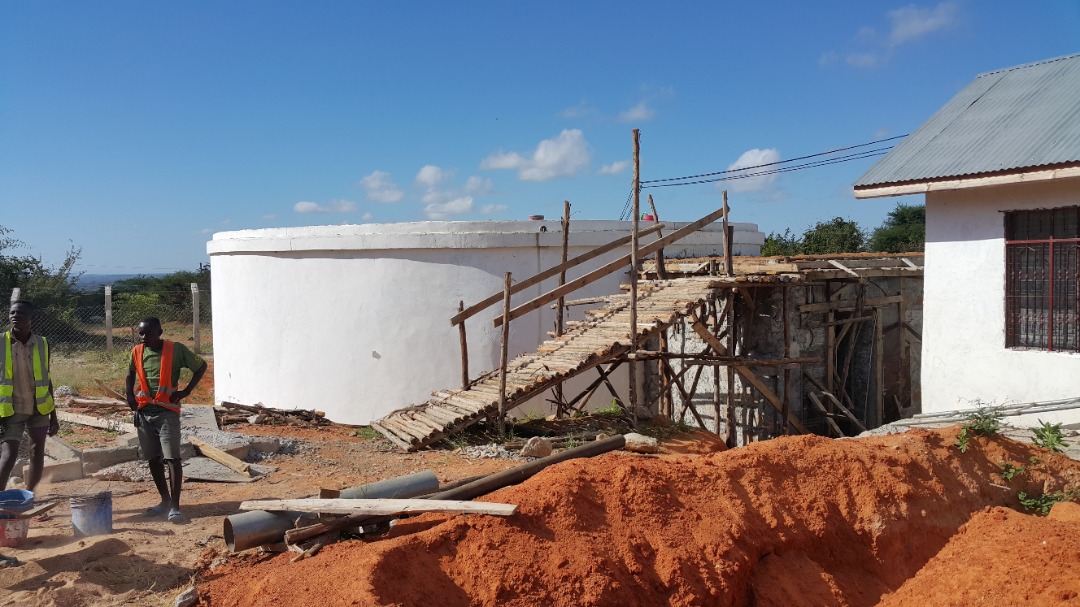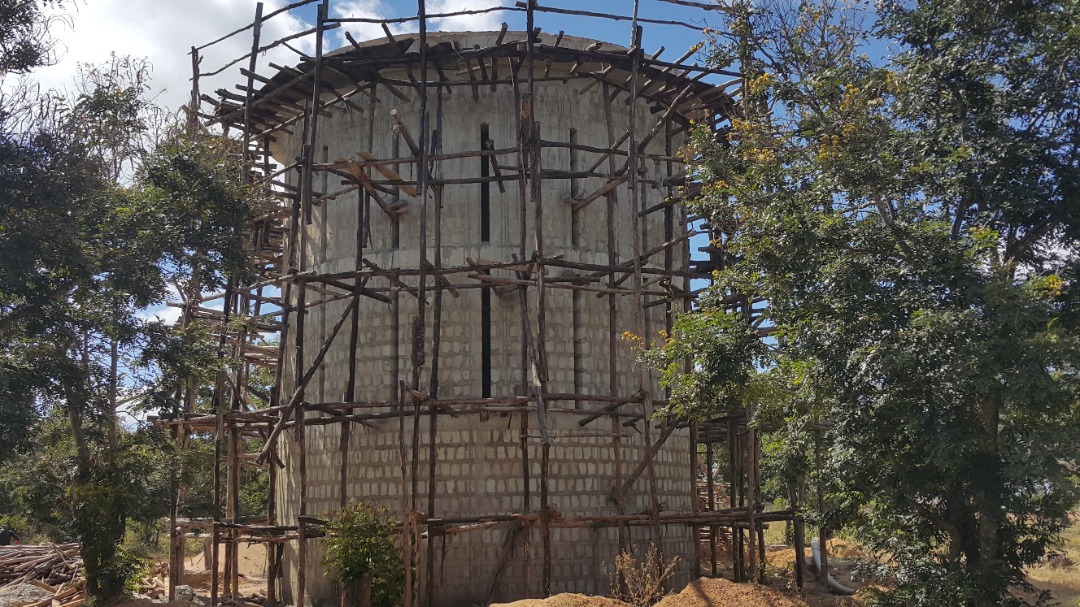 Ujenzi wa moja ya matenki mawili ya maji yenye ujazo wa lita 200,000 kwa ajili ya Mradi wa Maji wa Vijiji 6 vya Songambele, Mlowa, Majengo, Tambukareli, Zinginali na Itigi katika Halmashauri ya Itigi, mkoani Singida.