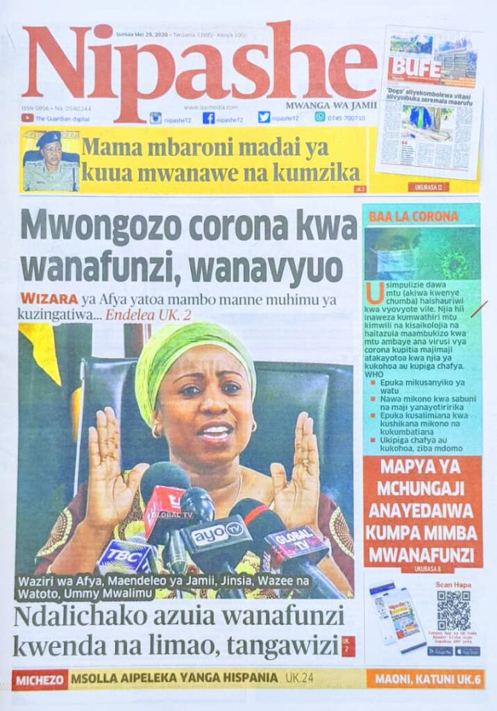 MagazetiPITIA VICHWA VYA HABARI KATIKA MAGAZETI YA LEO MAY 29,2020 Last updated: 2020/05/29 at 6:39 AM Alex Sonna 6 years ago Share SHARE Alex Sonna May 29, 2020 May 29, 2020 Share this Article Facebook Twitter Email Print Previous Article NHIF sasa imetukomboa- Wamachinga Next Article MGAHAWA WA THE KOFFEE SHOP WATOA MSAADA KWA WANAHABARI IRINGA