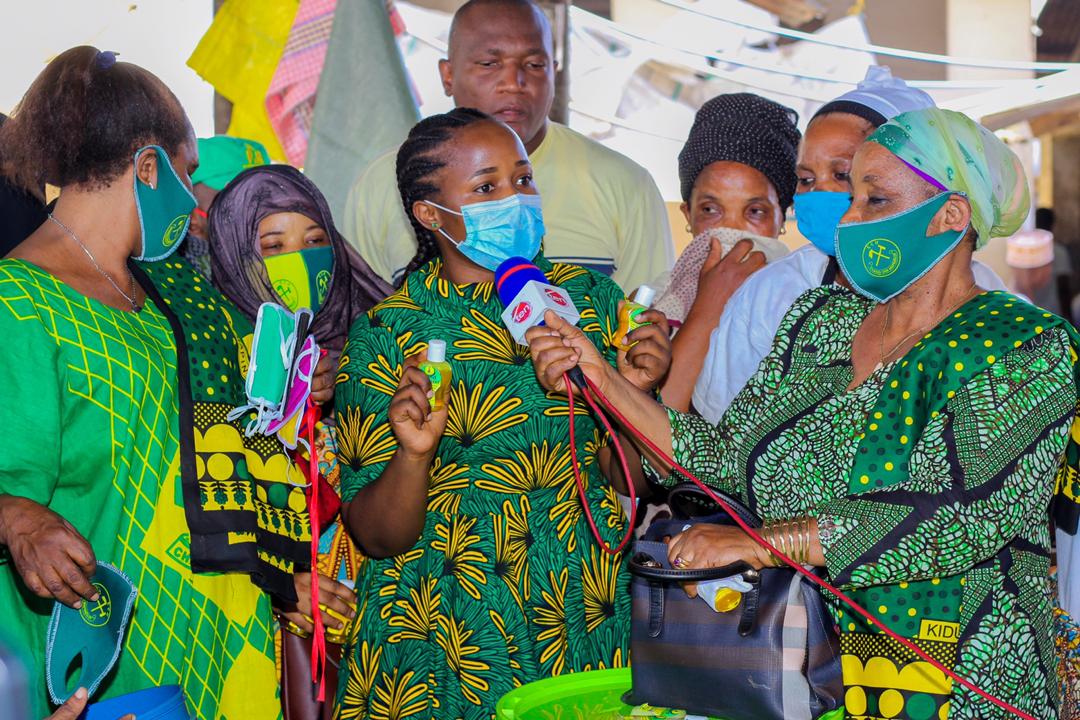 Akizungumza wakati wa ugawaji wa vifaa kinga hivyo kwa wanawake wajasiriamali wa Soko la Kuku na Mbogamboga Manzese jijini Dar es Salaam Mwenyekiti wa UWT Ubungo Pili Mustapha, alisema kampeni hiyo imeanza kwa ugawaji wa Barakoa, Vitakasa mikono na ndooo kwa ajili ya kuwekea maji ya kunawa mikono.