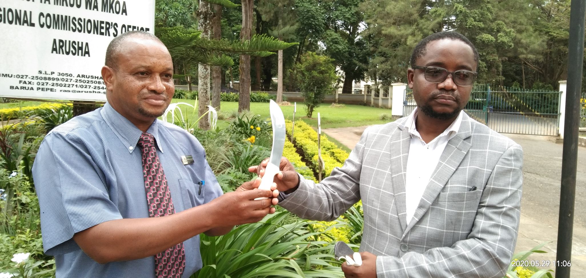Akikabidhi vifaa hivyo kwa kaimu Katibu Tawala wa mkoa wa Arusha kwa
