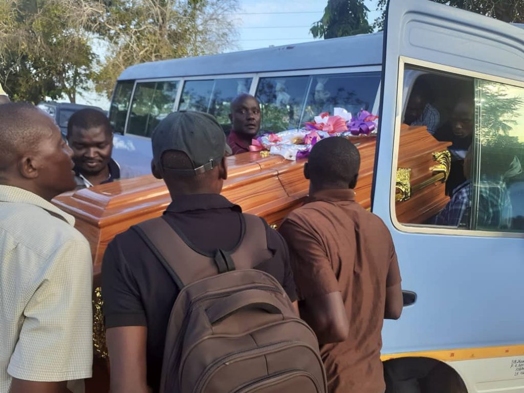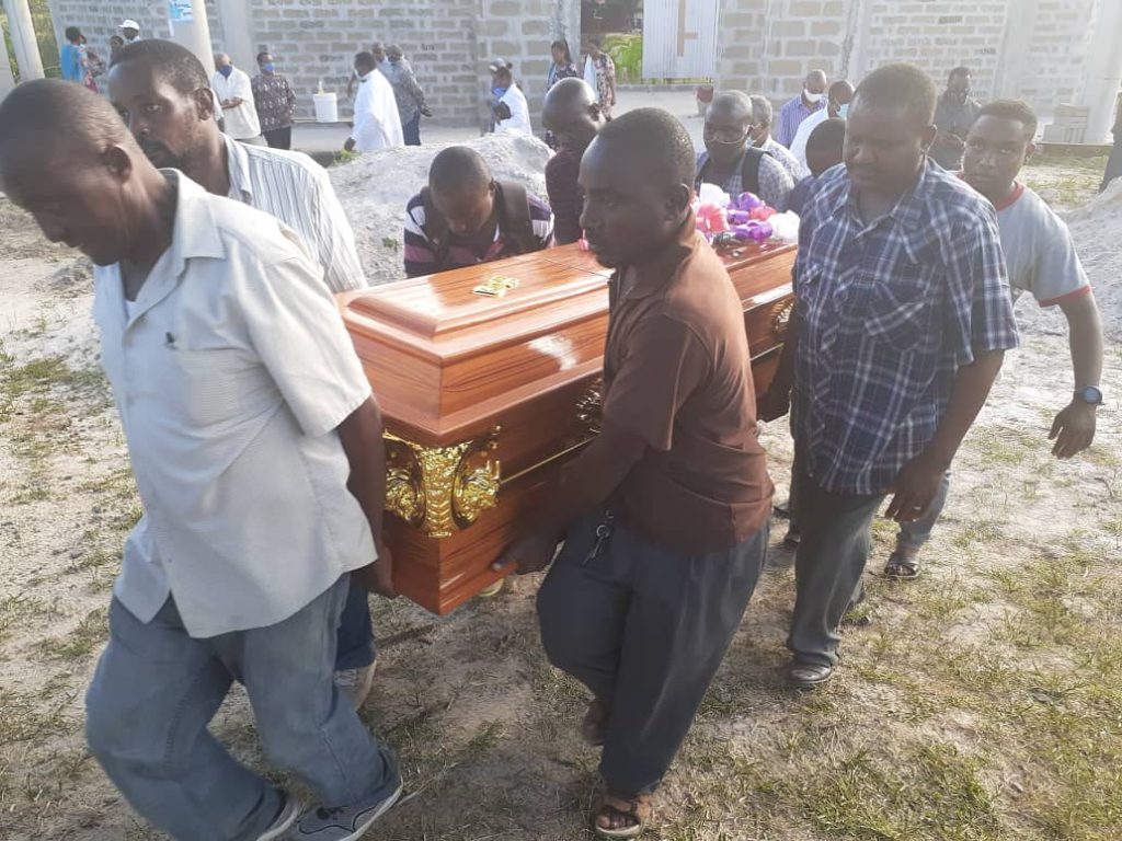Jeneza lililobeba mwili wa Marehemu Christopher Mfinanga likiingizwa katika gari tayari kwa kuelekea kijijini kwao Ugweno, Usangi Same mkoani Kilimanjaro kwa ajili ya kumpumzisha.