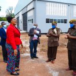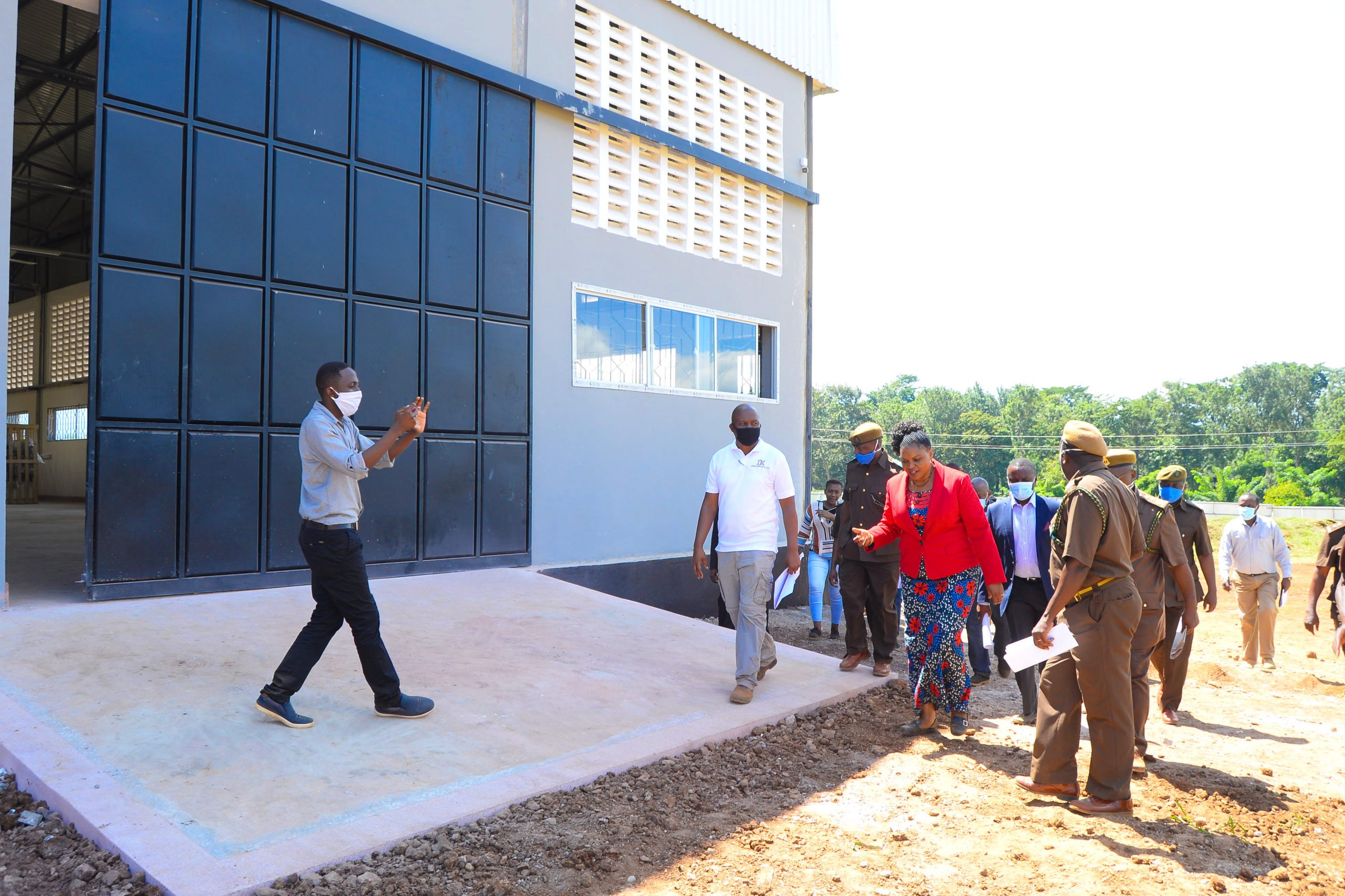 Waziri wa Nchi, Ofisi ya Waziri Mkuu anayeshughulikia Sera, Bunge, Kazi, Vijana, Ajira na Wenye Ulemavu Mhe. Jenista Mhagama akiwa ameongozana na wasimamizi wa mradi wa ujenzi wa Kiwanda cha bidhaa za Ngozi cha Karanga kwa lengo la kukagua maendeleo ya mradi huo.