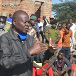 Waziri wa Nchi, Ofisi ya Waziri Mkuu anayeshughulikia Sera, Bunge, Kazi, Vijana, Ajira na Wenye Ulemavu Mhe. Jenista Mhagama akizungumza na dereva wa Katapira Bw. George Michael alipokuwa akikagua maendeleo ya mradi wa ujenzi wa kiwanda cha bidhaa za Ngozi cha Karanga, Moshi Mkoani Kilimanjaro.