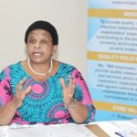 Rais wa Chama Walimu Tanzania (CWT) Bi. Leah Ulaya akitoa shukrani na kuelezea namna uongozi huo mpya utakavyosimamia Chama hicho.
