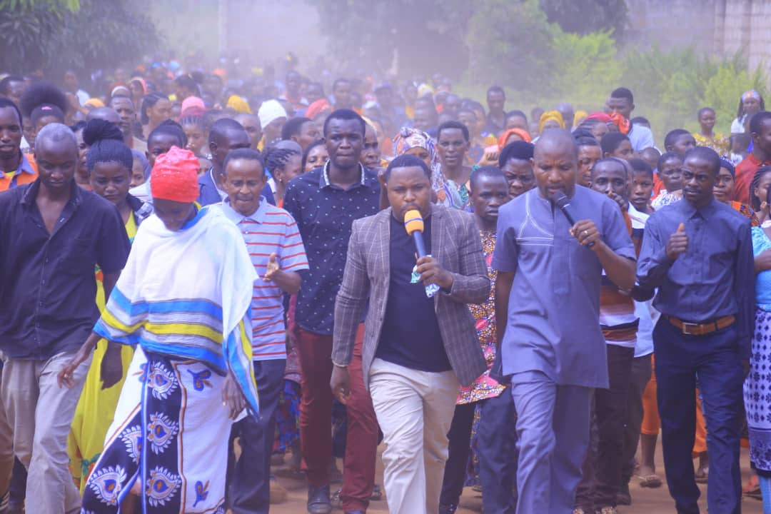 Kiongozi Mkuu wa Huduma ya Sauti ya Uponyaji Tanzania, Nabii Joshua Ararm Mwantyala akiongoza maelfu ya Watanzania katika maombi ya kumshukuru Mungu kwa kuiondoa corona nchini Tanzania. (Picha na Sauti ya Uponyaji Tanzania).