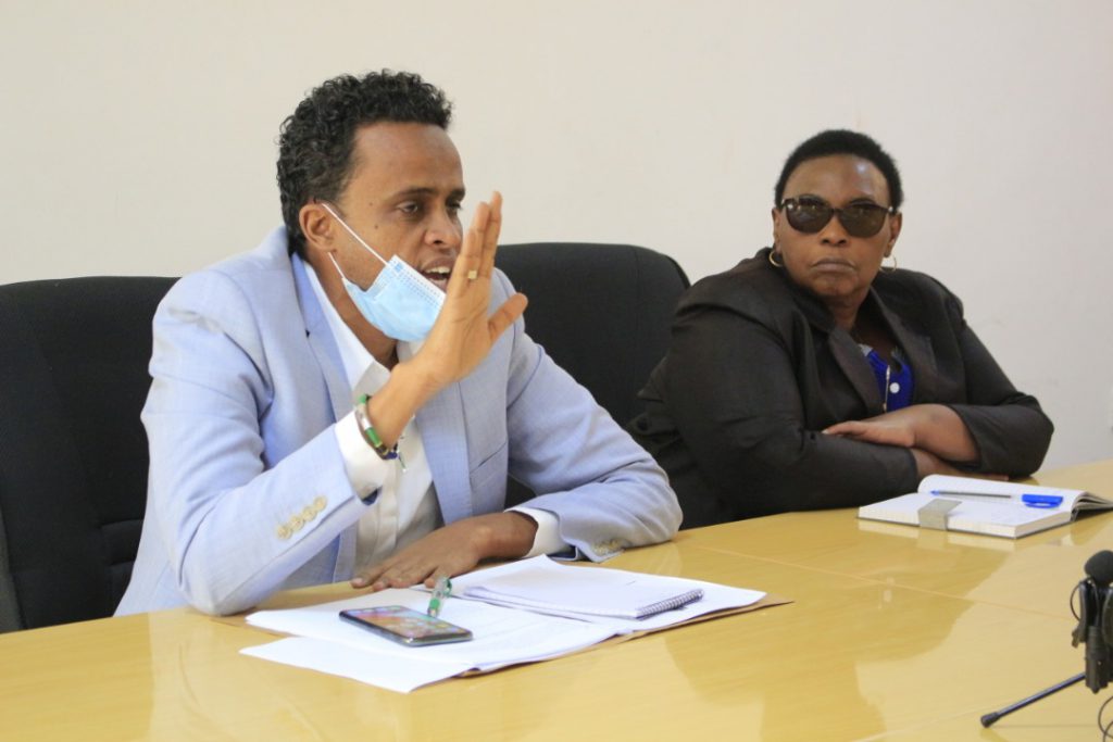 Naibu Waziri wa Kilimo Mhe. Hussein Bashe akisisitiza jambo katika Mkutano uliyohudhuriwa na wanunuzi wa zao la zabibu na shahiri pamoja na wakulima wa mazao leo jijini Dodoma.