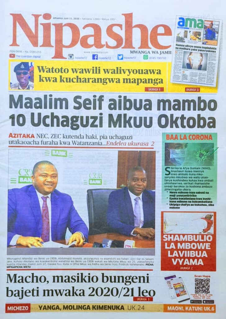 MagazetiUncategorizedPITIA VICHWA VYA HABARI KATIKA MAGAZETI YA LEO JUNE 11,2020 Last updated: 2020/06/11 at 3:17 AM Alex Sonna 5 years ago Share SHARE Alex Sonna June 11, 2020 June 11, 2020 Share this Article Facebook Twitter Email Print Previous Article KUVUNJWA KWA BARAZA LA MADIWANI KINONDONI,UONGOZI WAJIVUNIA KUKAMILISHA MIRADI MBALIMBALI KATIKA KIPINDI CHA MIAKA 5 Next Article LIVE:RAIS DKT.MAGUFULI AKIWEKA JIWE LA MSINGI BARABARA MTUMBA