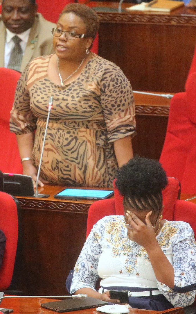 Mbunge wa Viti Maalum kupitia CHADEMA, Latifa Chande akitamka kukihama chama hicho kwa kusema anarejea nyumbani CCM, Bungeni jijini Dodoma, Juni 15, 2020. Kulia ni Mbunge wa Viti Maalum kupitia CHADEMA Grace Kiwelu . (Picha na Ofisi ya Waziri Mkuu).