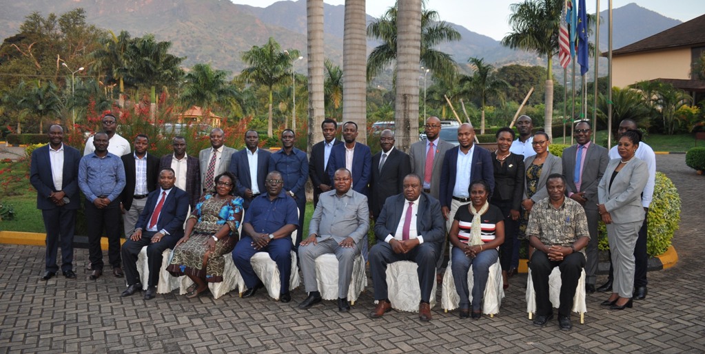 Picha ya pamoja ya Katibu Mkuu na Naibu Katibu Mkuu Wizara ya Viwanda na Biashara pamoja na Wataalamu wa mapitio ya Sera ya Viwanda Vidogo na Biashara ndogo katika ukumbi wa Hoteli ya Nashera, Mkoani Morogoro.