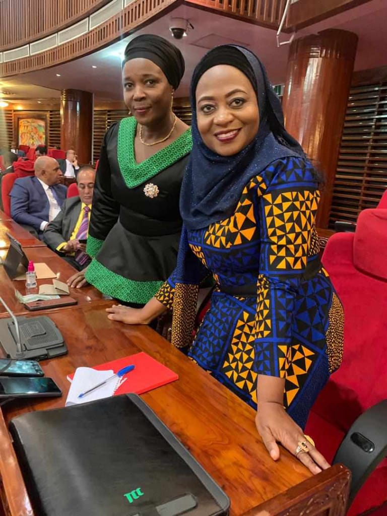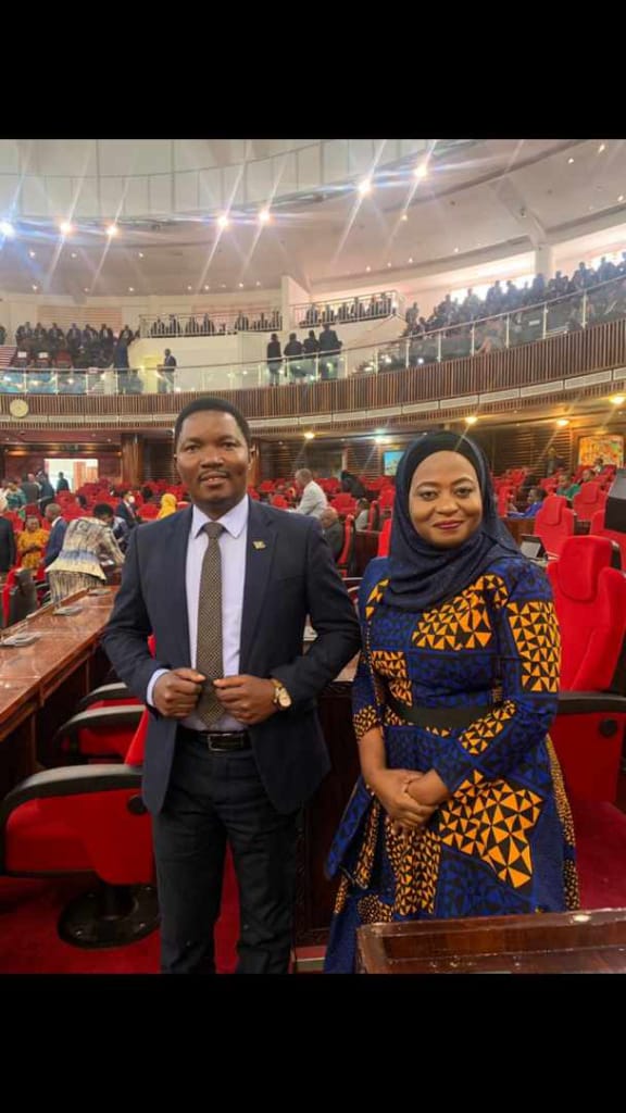 Naibu Waziri wa Nishati Mhe. Subira Mgalu (Kushoto) akipata picha ya pamoja na Waziri wa Tamisemi Mhe.Selemani Jaffo baada ya kuvunjwa kwa bunge la 11 Jijini Dodoma.