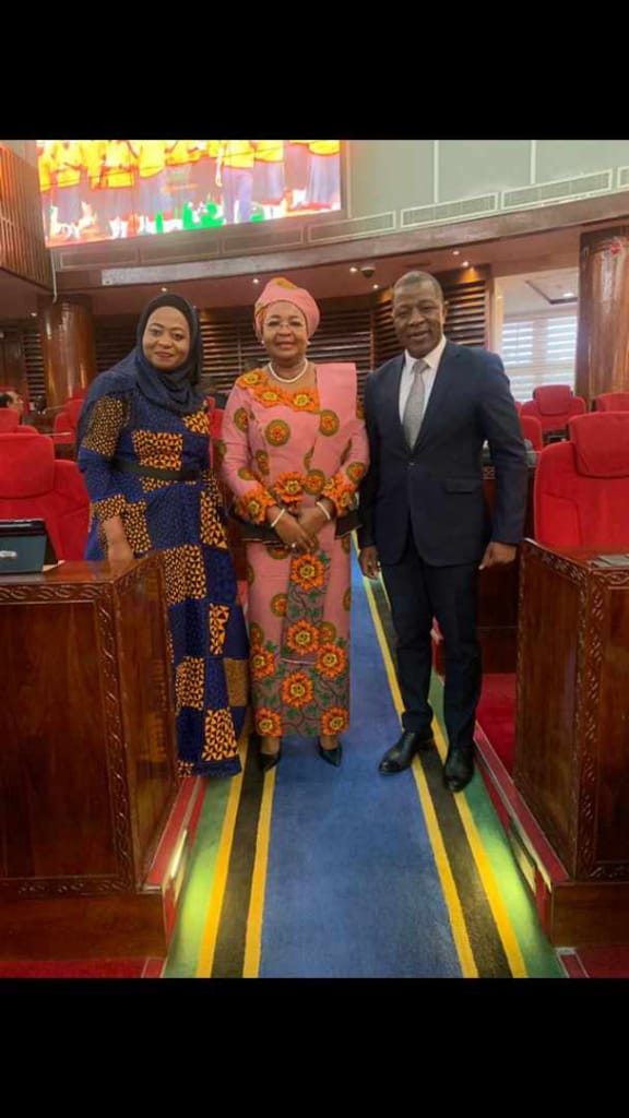 Naibu Waziri wa Nishati Mhe. Subira Mgalu (Kushoto) akipata picha ya pamoja na mke wa Rais Mstaafu wa awamu ya nne wa Tanzania Dkt.Jakaya Mrisho Kikwete, Mhe. Salma Rashid Kikwete pamoja na Naibu Waziri wa Mifugo na Uvuvi Mhe.Abdallah Ulega baada ya kuvunjwa kwa bunge la 11 Jijini Dodoma.