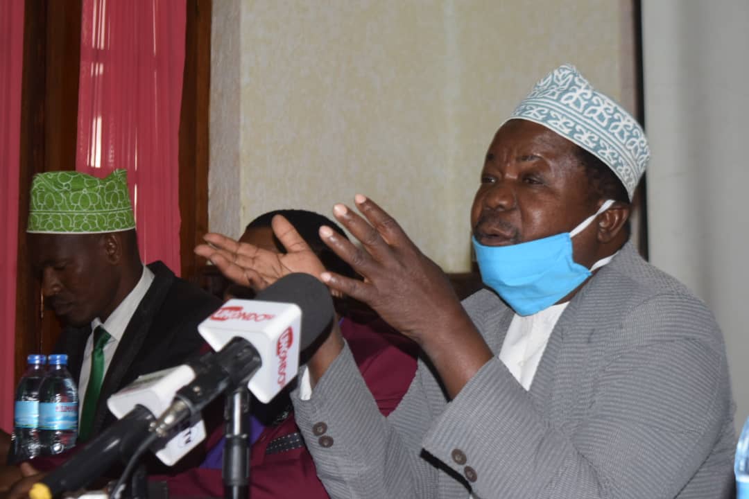 Katibu wa mkoa na Mjumbe wa Baraza la Masheikh wa Mkoa wa Dodoma, Hussein Kuzungu akitoa pongezi kwa Rais John Pombe Magufuli  wakati wa mkutano wa Viongozi  wa Dini Mkoa wa  Dodoma na Waandishi wa habari, leo jijini Dodoma