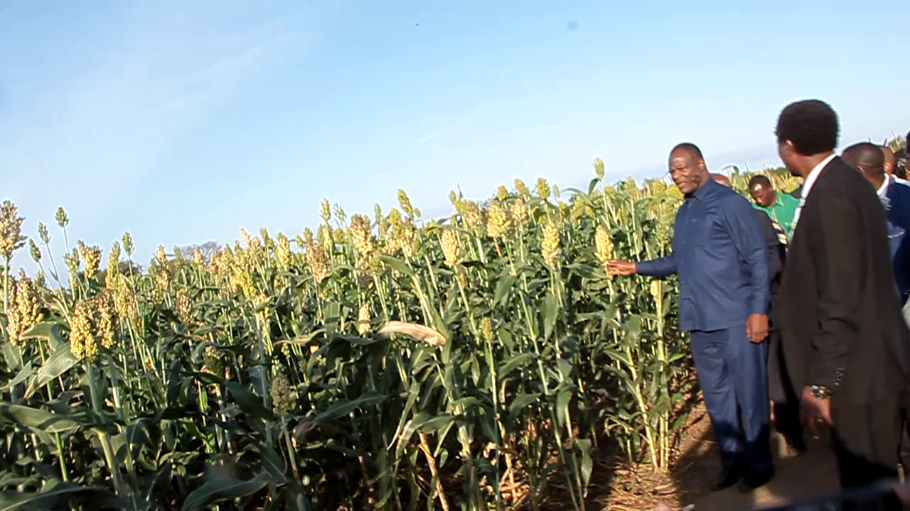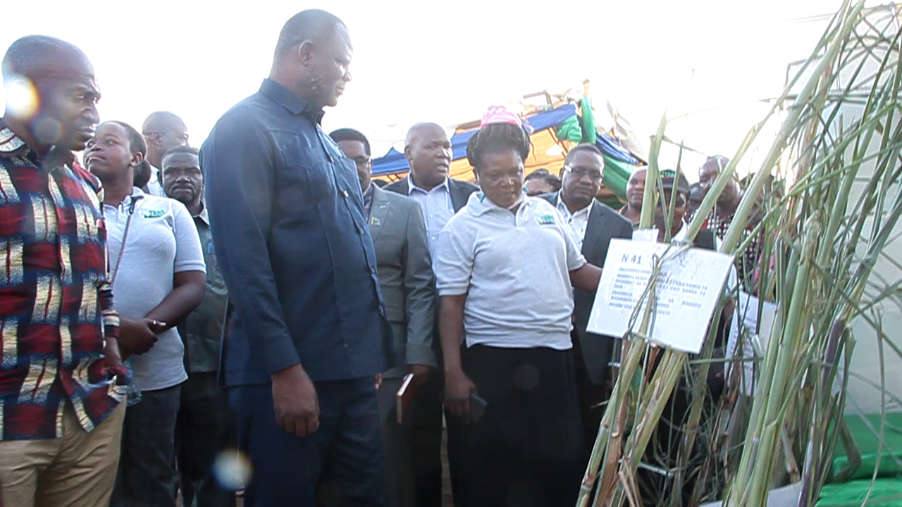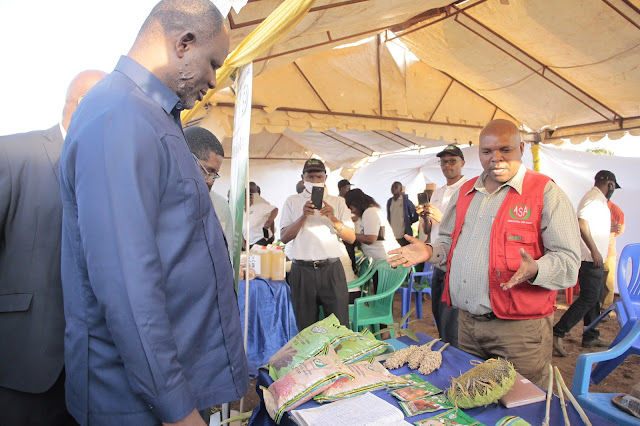 Waziri Hasunga, alikagua shamba la Mtama katika maonesho hayo. Mashamba hayo pamoja na mengine hutumiwa na TARI kama mashamba darasa kwa wakulima na wanafunzi wa vyuo mbalimbali katika kupata ujuzi stahiki na teknolojia za kisasa kwa tija na mapinduzi ya kilimo.