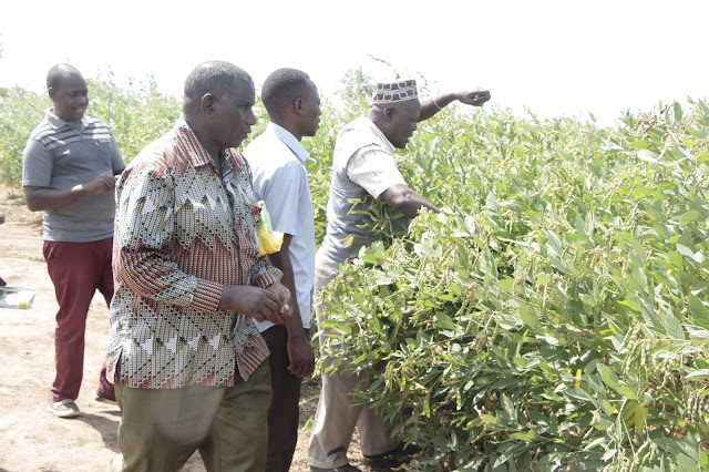 Wakulima wa Kijiji cha Msowero wakiangalia shamba darasa la kilimo cha mbaazi.