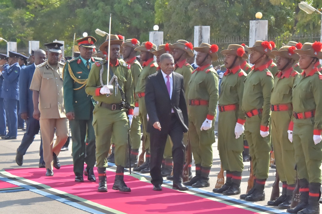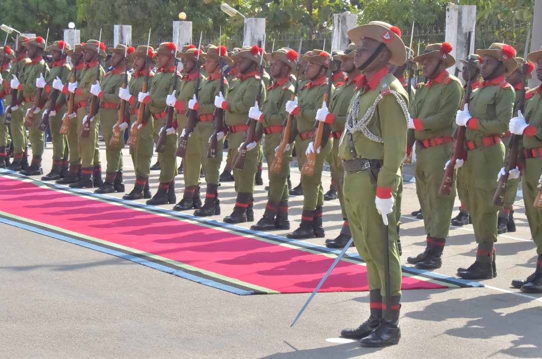 Kikosi cha Polisi F.F.U wakitoa salamu ya Heshma kwa Rais wa Zanzibar na Mwenyekiti wa Baraza la Mapinduzi Dk.Ali Mohamed Shein (hayupo pichani) katika Gwaride maalum wakati wa sherehe za kulivunja Baraza 9 la Wawakilishi la Zanzibar zilizofanyika leo Chukuwani Nje kidogo ya Mji wa Zanzibar.[Picha na Ikulu.] 20/06/2020.