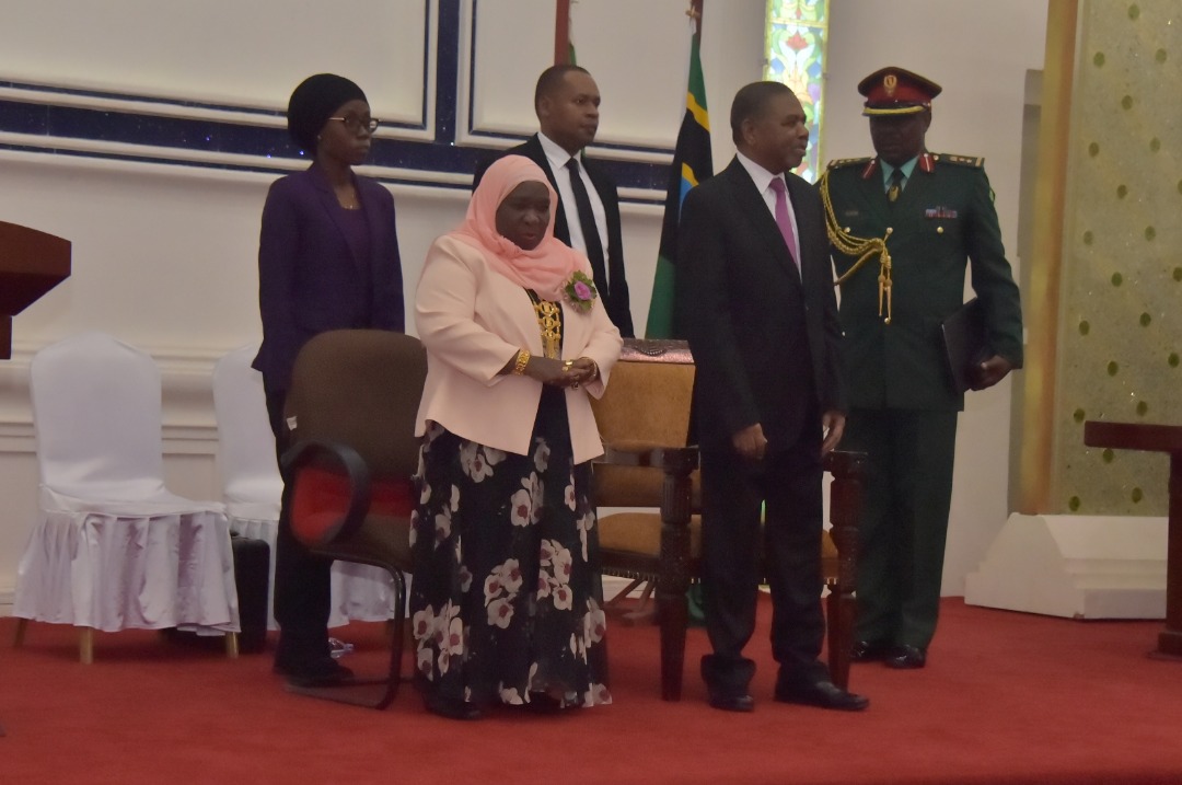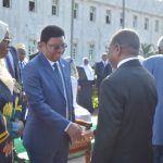 Rais wa Zanzibar na Mwenyekiti wa Baraza la Mapinduzi Dk.Ali Mohamed Shein akiwa na Mkewe Mama Mwanamwema Shein mara baada ya kuingia katika Ukumbi wa Baraza la wawakilishi- Chukwani Nje ya Mji wa Zanzibar kwa ajili ya shuhuli za kulivunja baraza la 9 la Wawakilishi sherehe zilizofanyika leo.[Picha na Ikulu.] 20/06/2020.