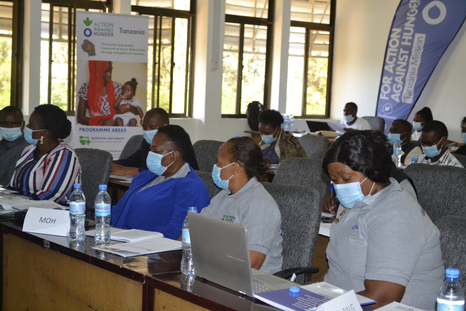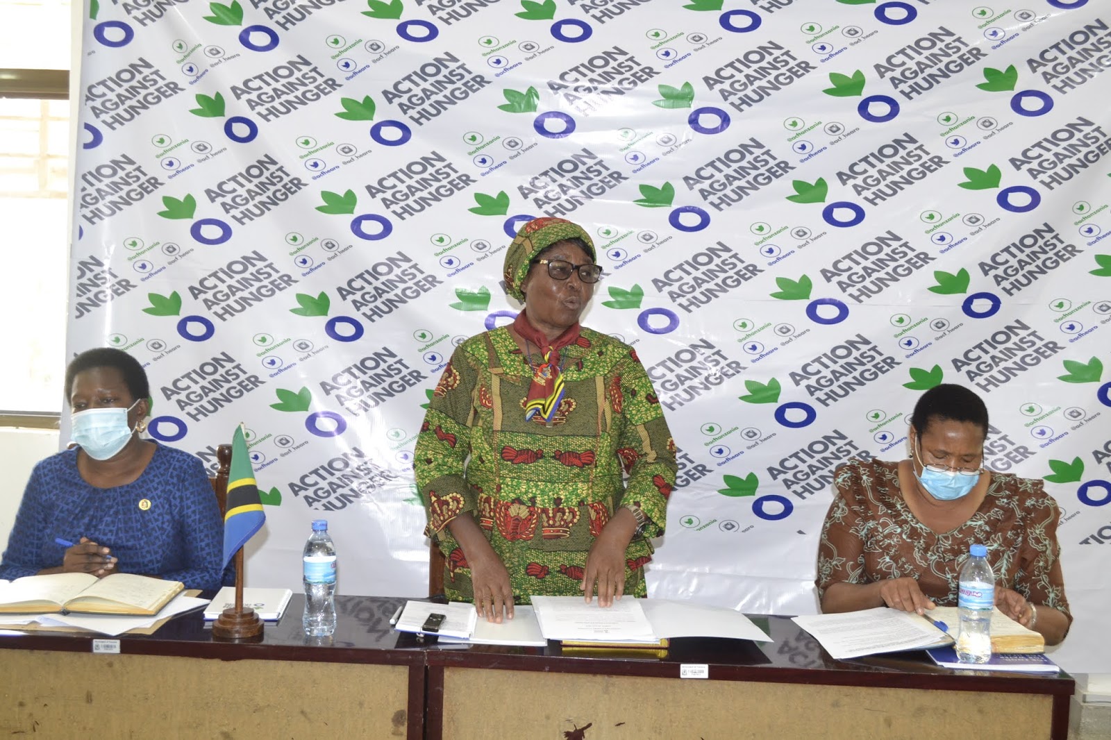 Mkuu wa Mkoa wa Singida Dk. Rehema Nchimbi, akiwa katika picha ya pamoja na Maofisa wa Shirika lisilokuwa la Kiserikali la Action Against Hunger.