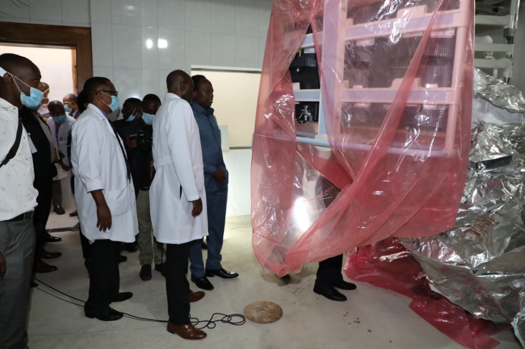 Naibu Waziri wa Afya Dkt Godwin Mollel akikagua mitambo ya kisasa ya maabara ya upasuaji wa ubongo ambayo itaanza kutoa huduma hivi karibuni