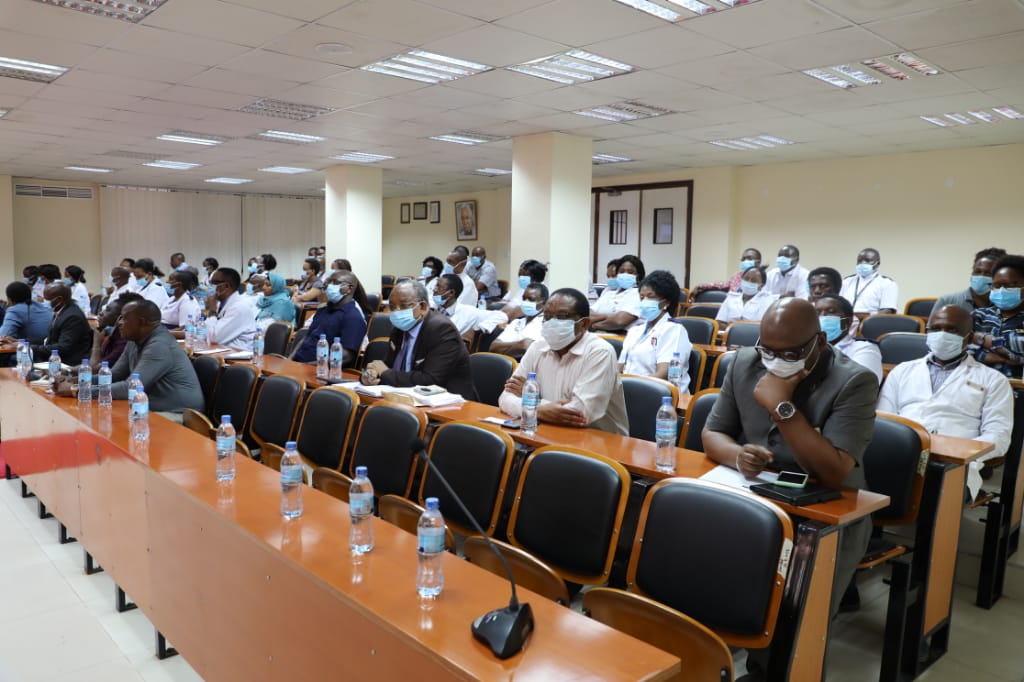 Wajumbe wa kamati tendaji ya MOI wakifuatilia hotuba ya Naibu Waziri wa Afya Dkt Godwin Mollel alipotembelea taasisi hiyo leo.