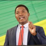 Rais wa Jamhuri ya Muungano wa Tanzania Mheshimiwa Dkt. John Pombe Magufuli akifungua bomba kwa pamoja na viongozi mbalimbali wakiwemo Waziri wa Maji Profesa Makame Mbarawa, Waziri wa TAMISEMI Selemani Jafo, Naibu Waziri wa Maji Jumaa Aweso, Mtendaji Mkuu wa Dawasa Eng. Cyprian Luhemeja, Mwenyekiti wa Bodi ya Dawasa Jenerali Mstaafu Davis Mwamunyange.
