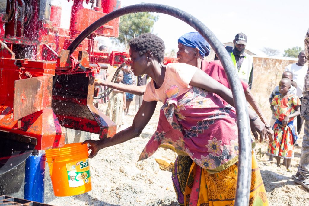 Sehemu ya akinamama wakichota maji mara baada ya Mbunge wa Dodoma Mjini Mhe. Anthony Mavunde kuwachimbia kisima cha maji Mradi uliotekelezwa na Mbunge huyo kipindi cha kampeni mwaka 2015.