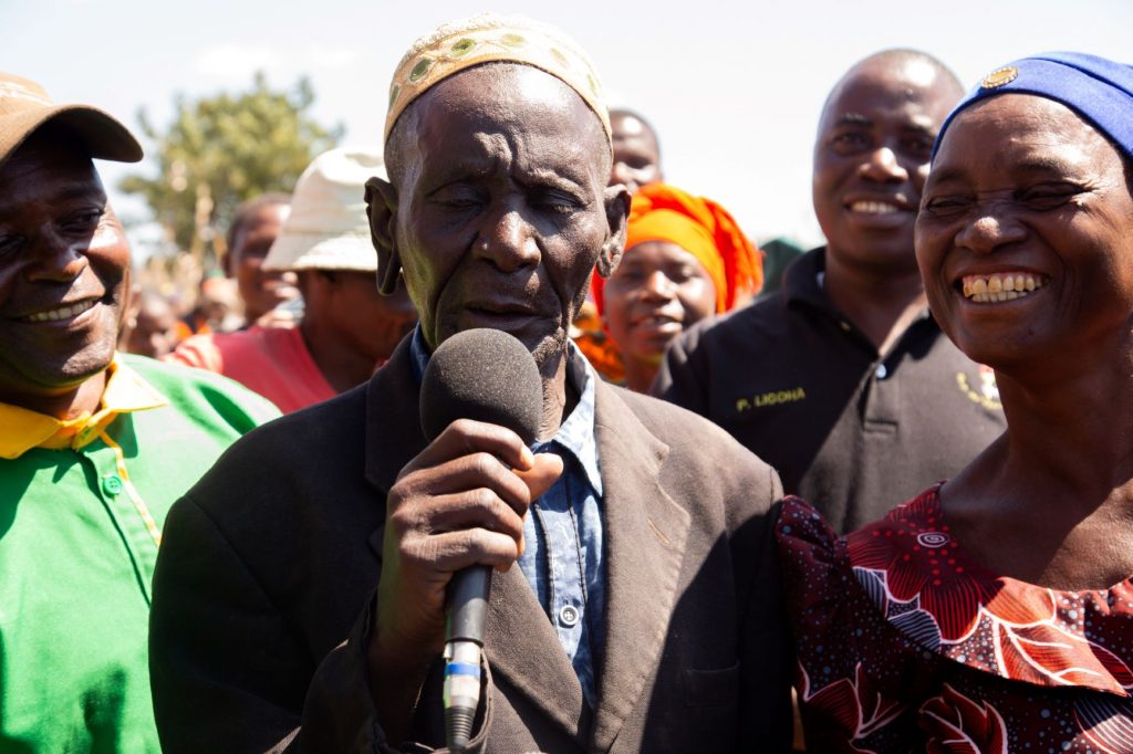 Mbunge wa Dodoma Mjini Mhe. Anthony Mavunde akitazama wananchi wa kijiji cha Mayeto kata ya Hombolo Makulu Wilaya ya Dodoma Mjini Mkoani Dodoma wakicheza ngoma mara baada ya kuwazindulia mradi wa maji na kumaliza tatizo la maji.