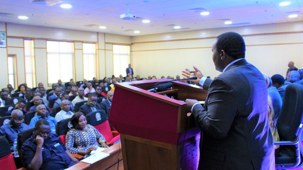 Katibu Mkuu Wizara ya Maji Prof. Kitila Mkumbo akizugumza wakati wa hafla ya utiaji saini wa mikataba ya utendaji kazi baina ya Wizara ya maji na Bodi za maji za mabonde na mamlaka za maji safi na mazingira iliyofanyika jijini Dodoma.