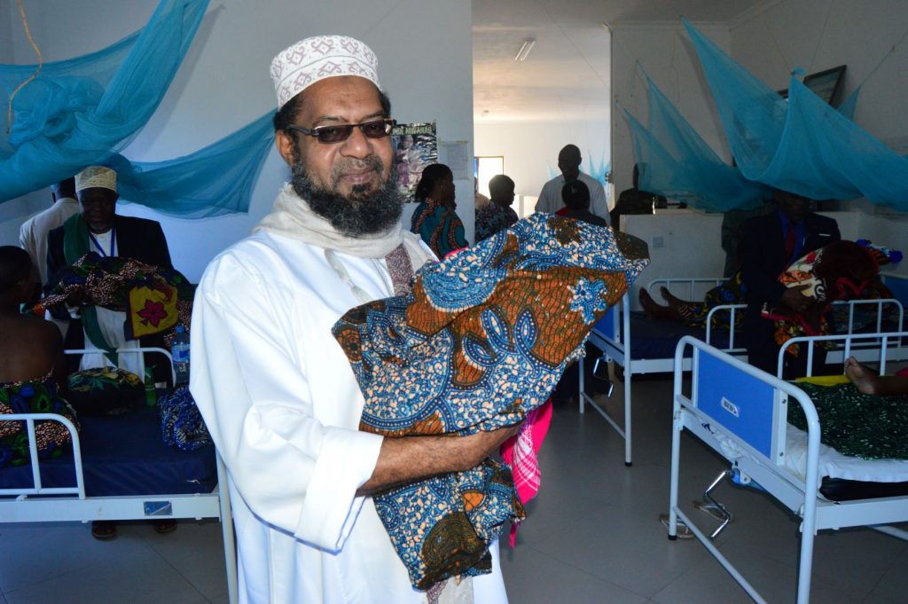 Mjumbe wa Kamati ya Amani ya Mkoa Shinyanga Bw. Khalfan Ally akiwa amebeba mtoto mchanga wakati wa kamati hiyo ilipotembelea Kituo cha Afya Tinde kwa lengo la kujionea miradi ya Afya na Uwekezaji Wilaya ya Shinyanga.