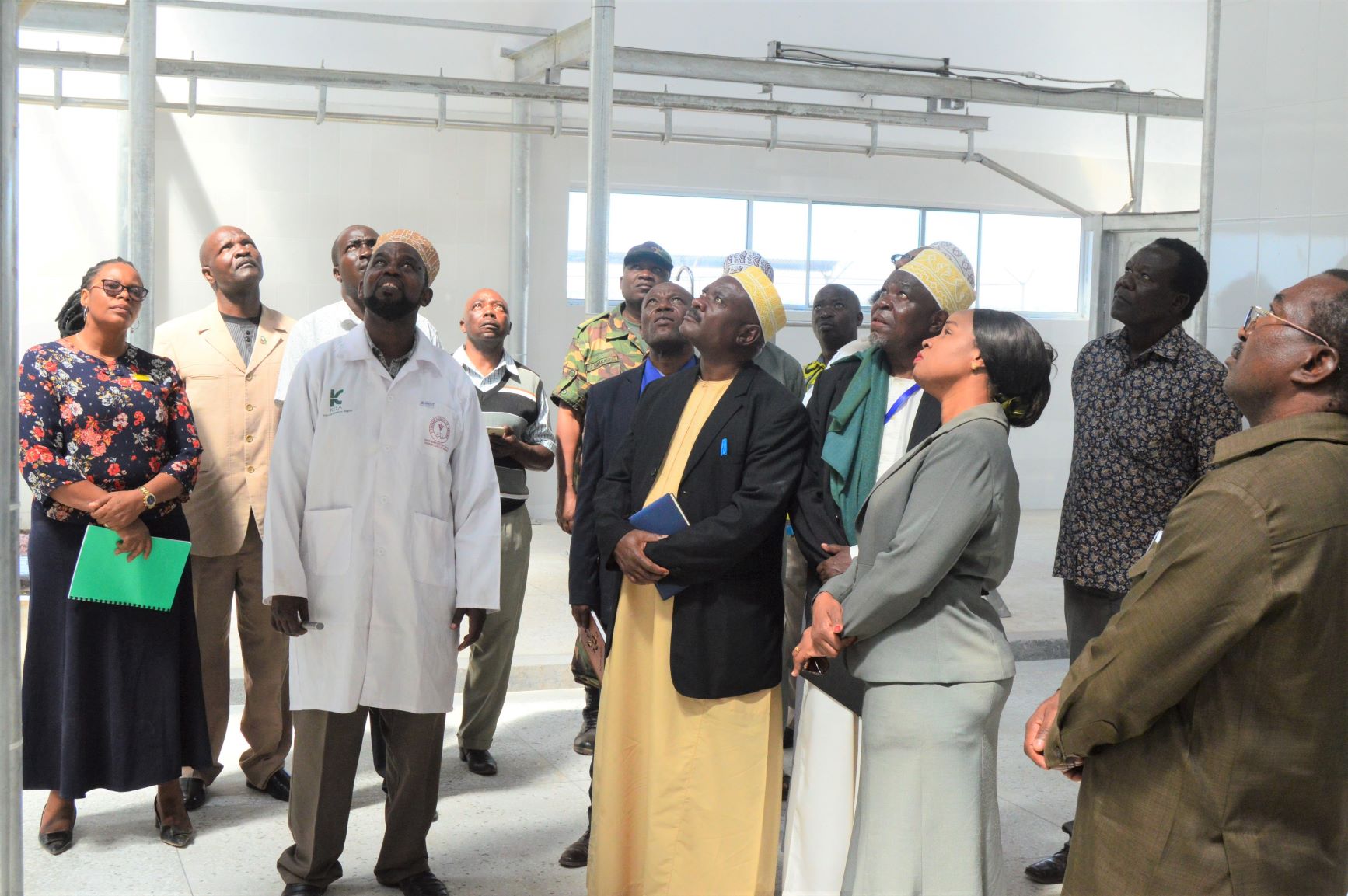 Wajumbe wa Kamati ya Amani ya Mkoa wa Shinyanga ikiongozwa na Shekhe Balulisa pamoja na Mkuu wa Wilaya Ya Shinyanga Bi. Jasinta Mboneko wakiangalia namna mchakato wa wa matayarisho ya uchinjaji nyama unavyofanyika mapema jana katika machinjio ya kisasa yaliyo mbioni kufunguliwa nje kidogo ya Manispaa ya Shinyanga.